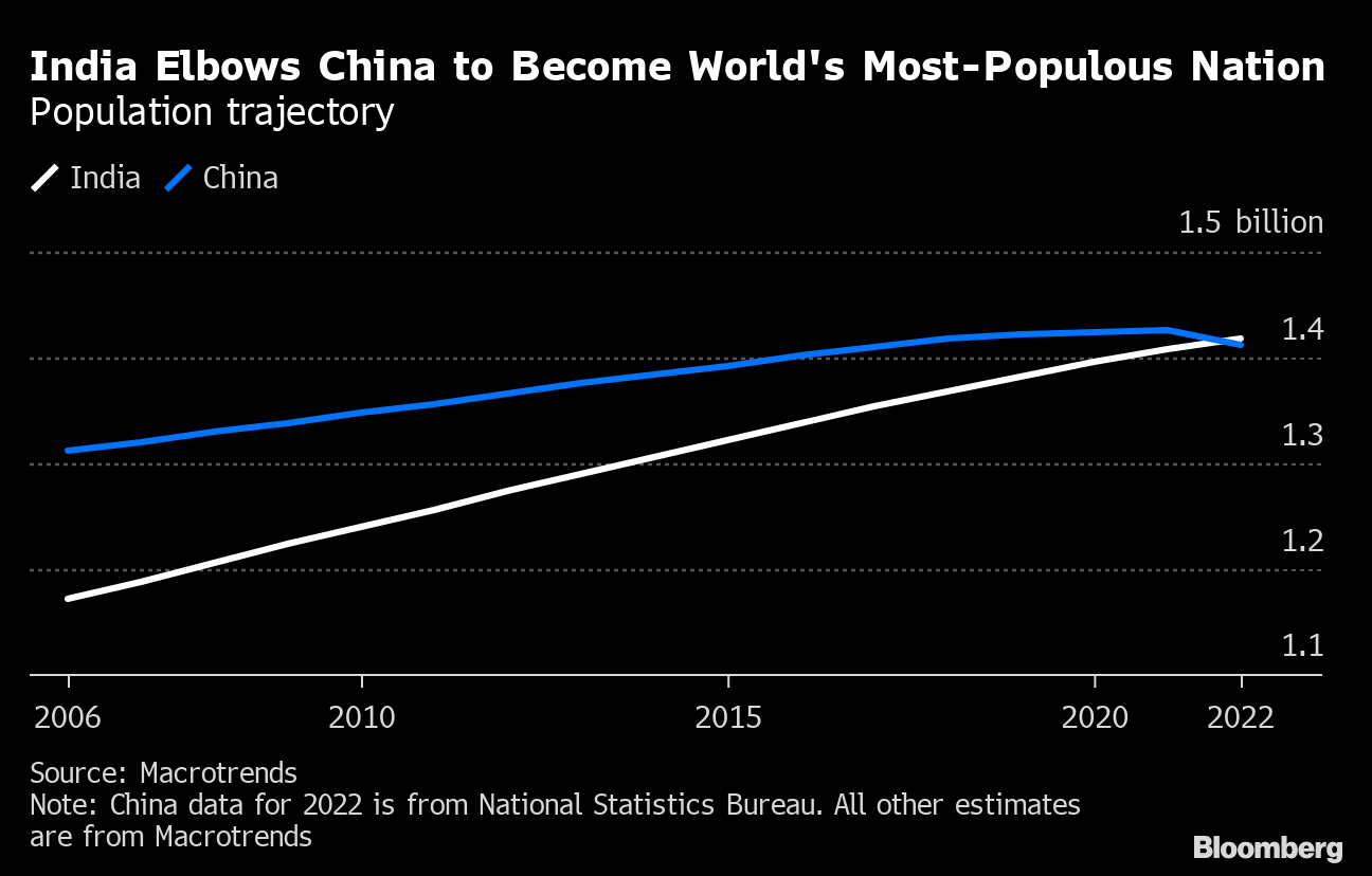 (Bloomberg) -- India may have already surpassed China as the world's most-populous nation in a milestone that adds urgency for Prime Minister Narendra Modi to create more jobs and ensure the country sustains its world-beating growth.