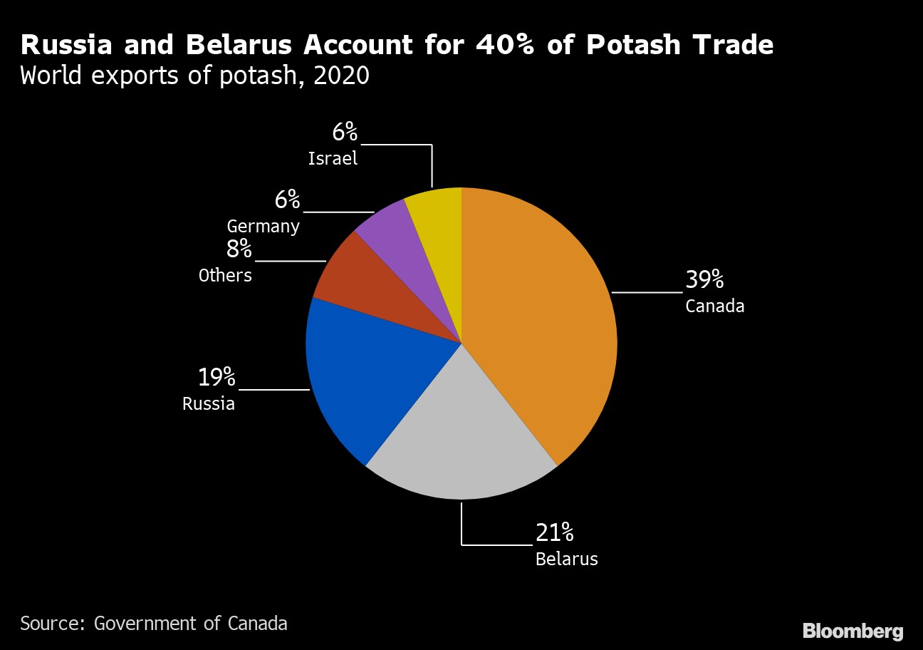Potash is a fertilizer that helps plants withstand drought and diseases. Prices soared earlier this year after the invasion of Ukraine, with many shippers, banks and insurers avoiding trade with Russia even though fertilizers are not directly targeted by sanctions. The industry is also contending with US and European Union sanctions on potash sales from Belarus, as well as China's move to restrict exports to protect its domestic market.