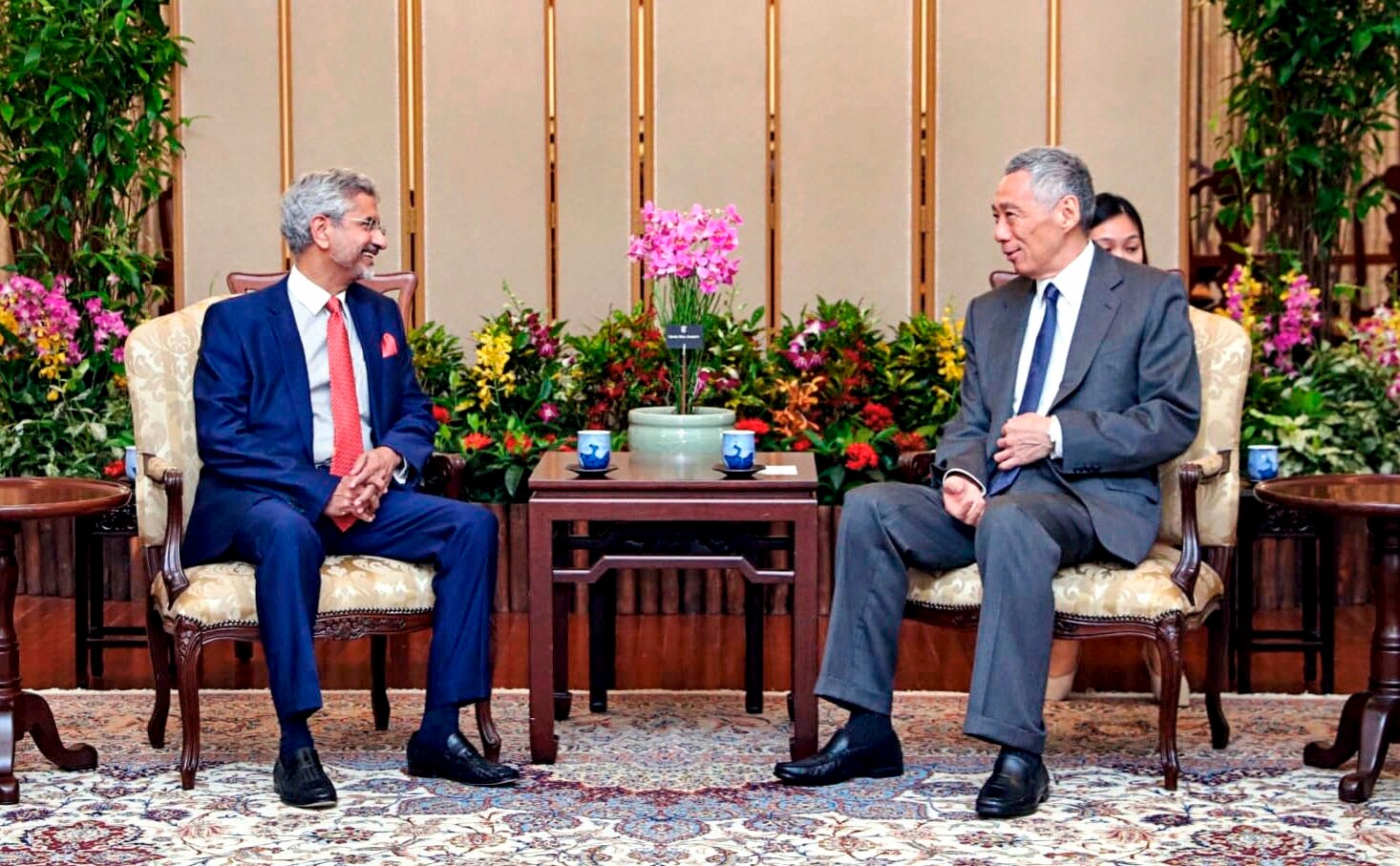 Singapore: External Affairs Minister S Jaishankar and Singaporean Prime Minister Lee Hsien Loong during a meeting in Singapore. (PTI Photo )
