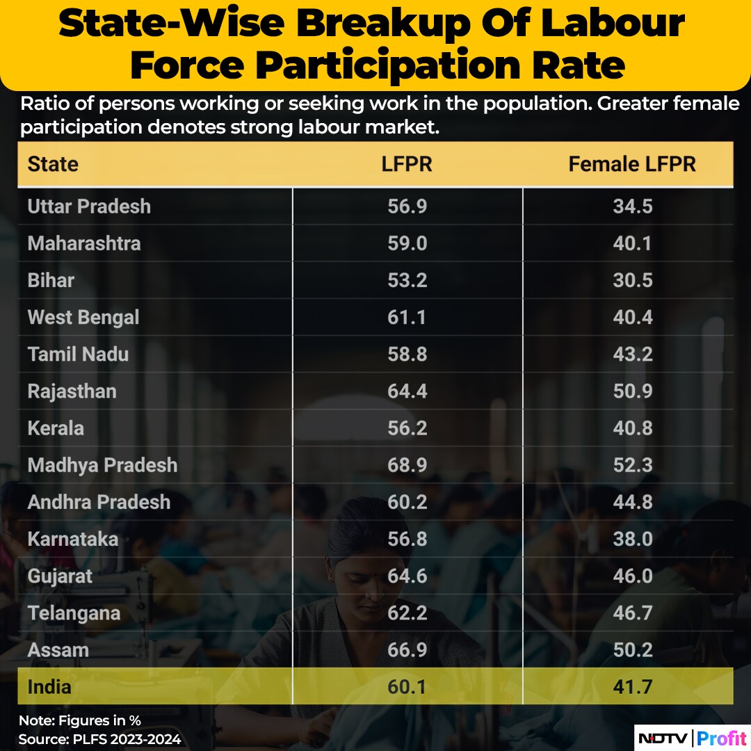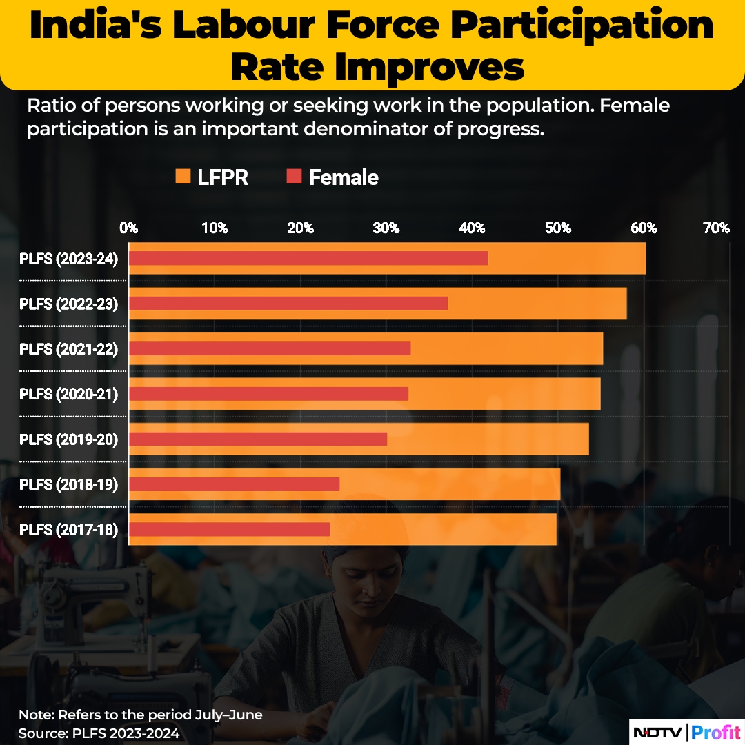 The rise was led by females, from 37% in 2022–23 to 41.7% in 2023–24. For males in India, LFPR increased to 78.8% in 2023-24, from 78.5% in 2022-23.