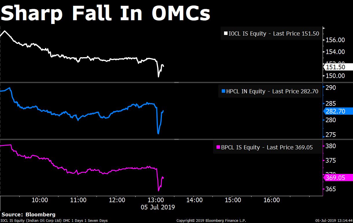 Indian equity benchmarks ended lower after the Finance Minister Nirmala Sitharaman's Union Budget 2019 failed to impress investors.