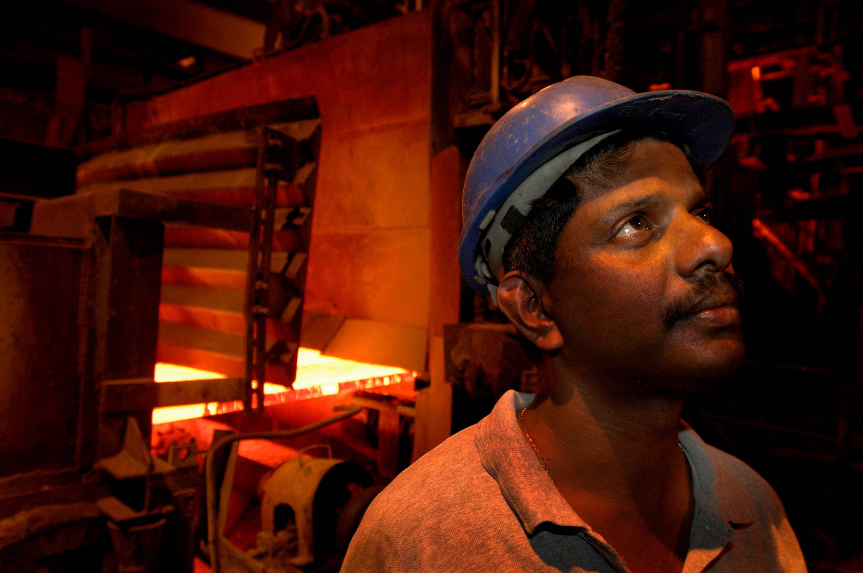 A steel worker from Ispat Ltd. in Madwan (Photographer: Graham Morrison/Bloomberg News)