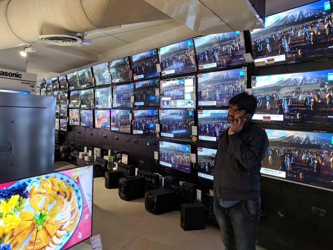India has more than 19 crore TV households, but the way content reaches these homes has shifted.  (A customer in a electronics showroom in Mumbai. Photographer: Anirudh Saligrama/NDTV Profit)