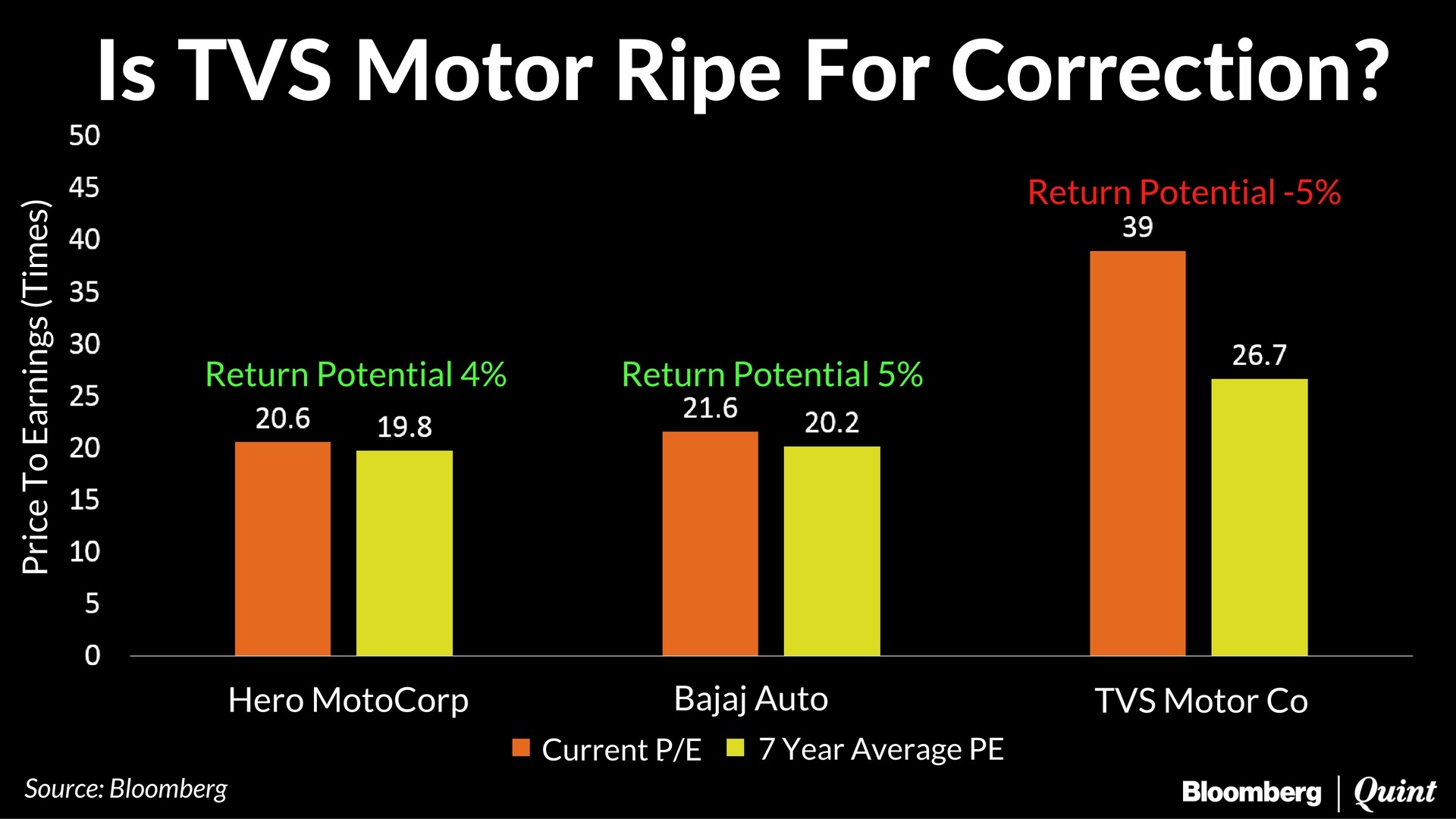Moreover, both Hero and Bajaj currently trade at prices below their Bloomberg consensus 12-month target, with a return potential of 4 to 5 percent. TVS on the other hand, trades at a price which is 5 percent higher than its Bloomberg consensus.
