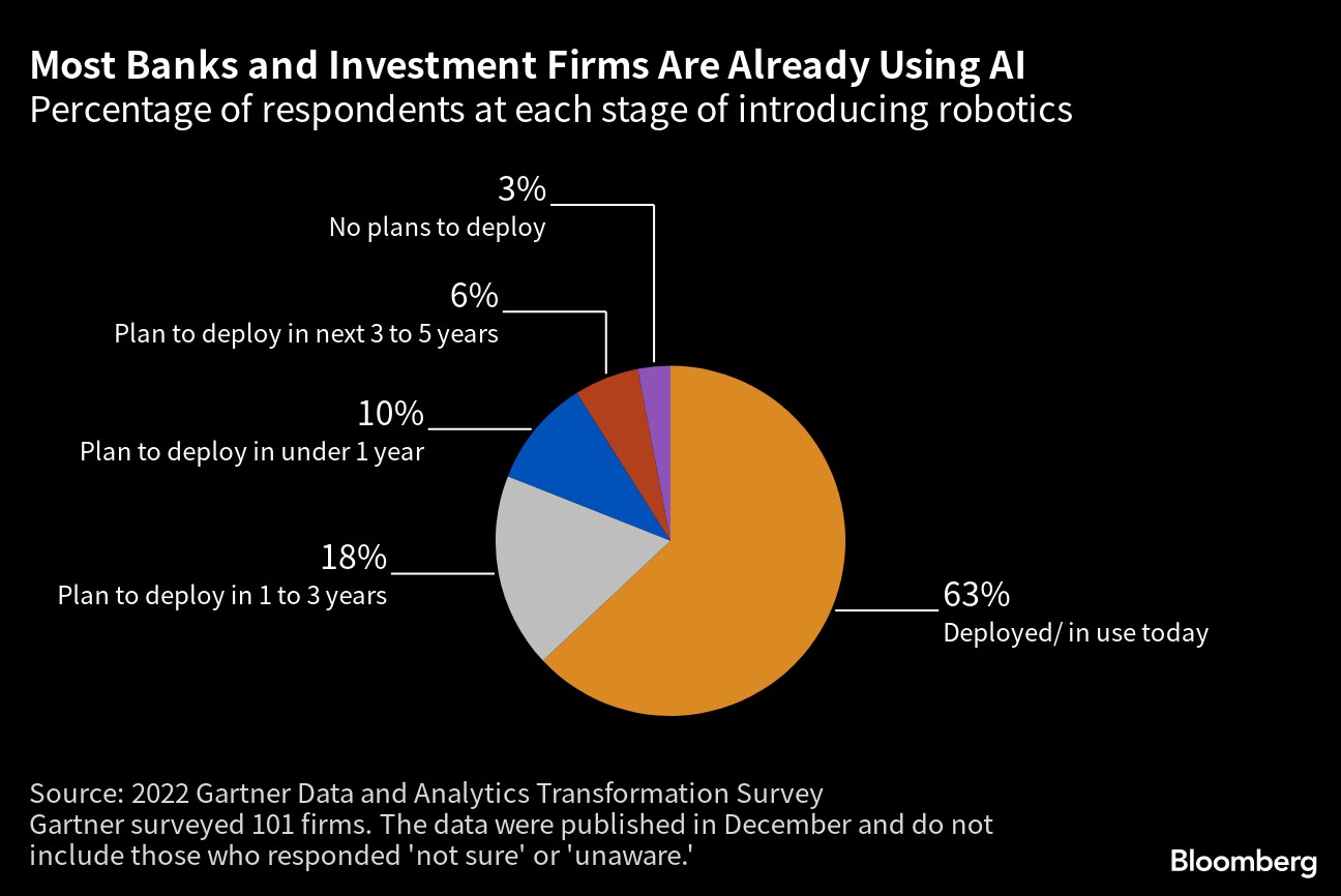 Deutsche Bank AG is using artificial intelligence to scan wealthy client portfolios. ING Group NV is screening for potential defaulters. Morgan Stanley says its bankers are “experimenting” in a “safe and contained environment.” Meanwhile, JPMorgan Chase & Co. is hoovering up talent, advertising for more AI roles than any of its rivals.