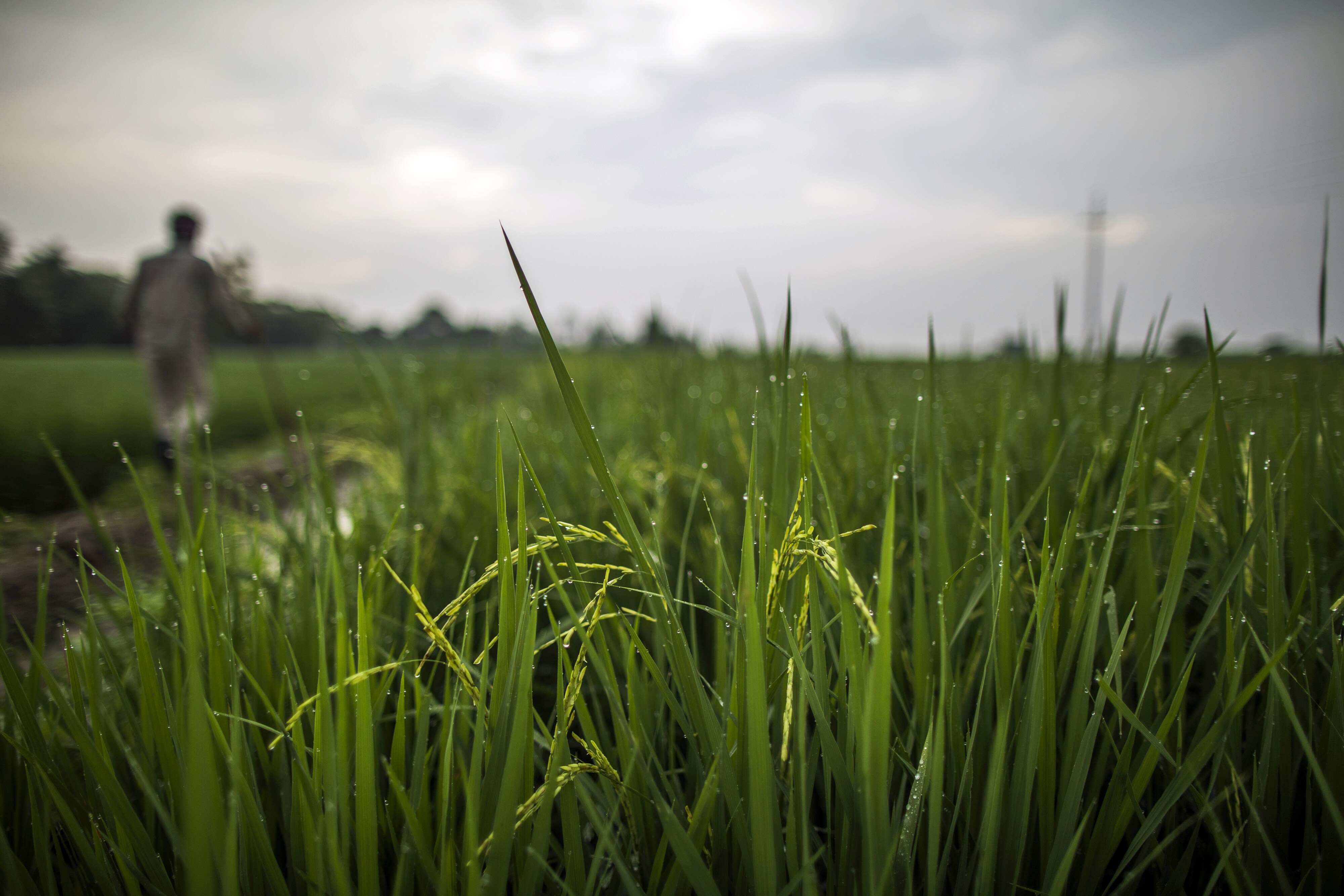 Rain droplets glisten on rice growing in a field of farmland in the Bhagpat district of Uttar Pradesh, India. (Photographer: Prashanth Vishwanathan/Bloomberg)