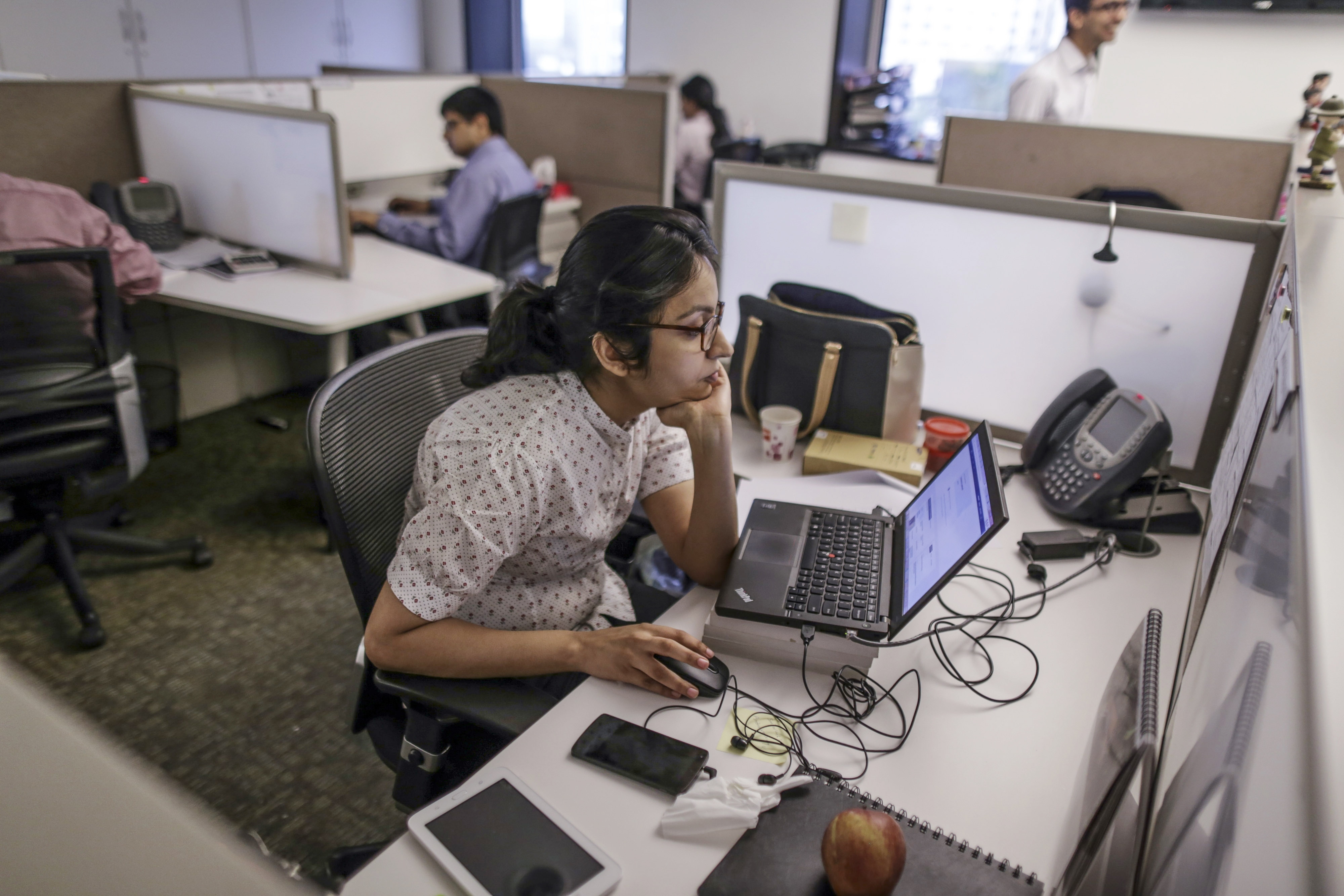 An employee works on a laptop computer at an office in Mumbai, India (Photographer: Dhiraj Singh/Bloomberg)