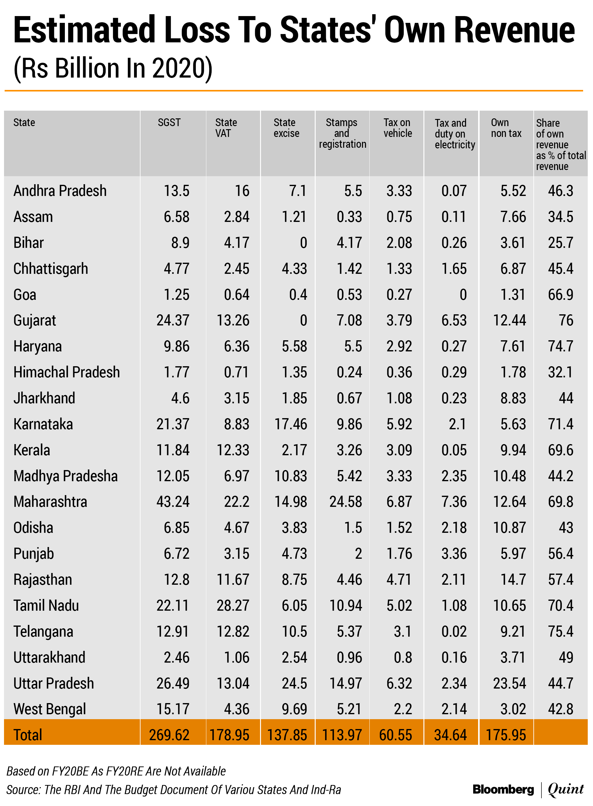 India Ratings expects states like Goa, Gujarat, Haryana, Tamil Nadu, Telangana, Karnataka, Maharashtra and Kerala to be the worst hit, as these states generate around 65-76 percent of their revenues.