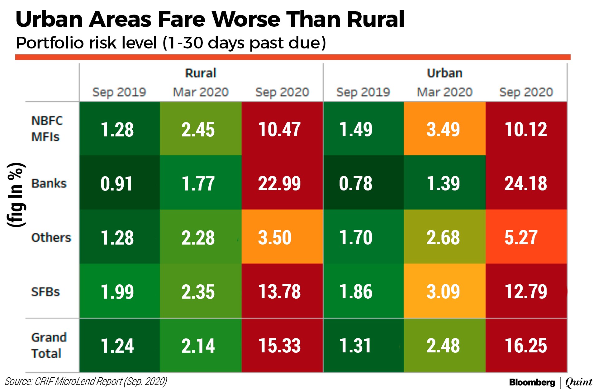 The early delinquency rate—portfolio at risk for 30 days past due—rose to 15.7% as of September 2020, according to a report by credit information agency CRIF High Mark. That compares with 2.3% in the preceding quarter and 1.3% a year earlier.