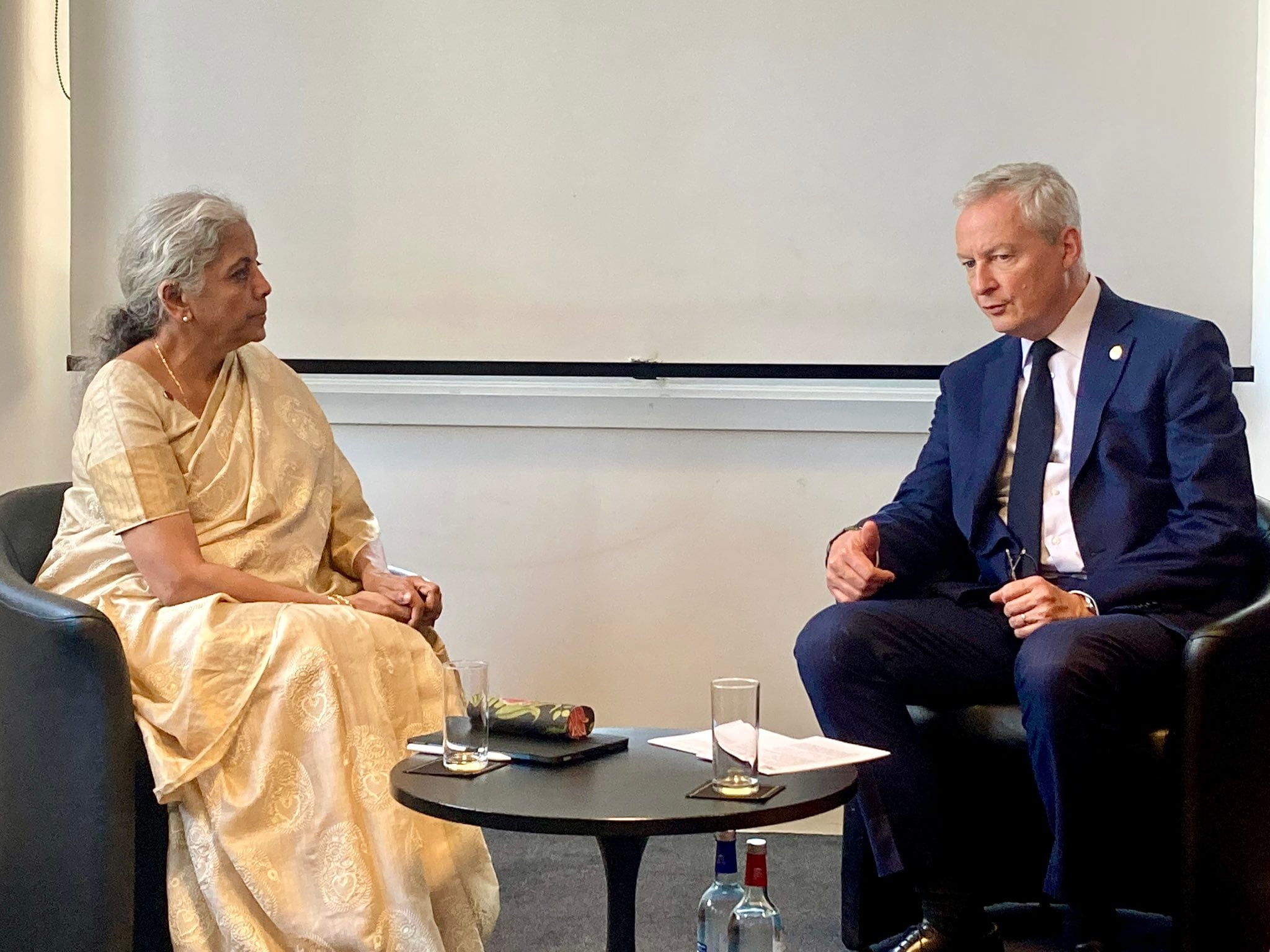 Sitharaman met France's Minister of Economy, Finance and Industrial and Digital Sovereignty Bruno Le Maire and exchanged views on key G20 deliverables under Indian Presidency, including strengthening MDBs (multilateral development banks) and managing debt vulnerabilities, among other issues.