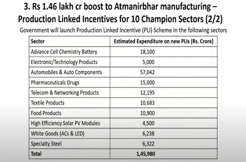 • Amount will be spent towards domestic defence equipment, industrial incentives, industrial infrastructure, and green energy.