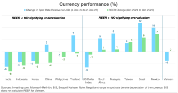 An undervalued currency works in the opposite direction. Exports become cheaper, imports costlier, which makes the current account (difference between exports and imports) more favourable. For developing economies, a weaker REER is often an advantage, not a threat.