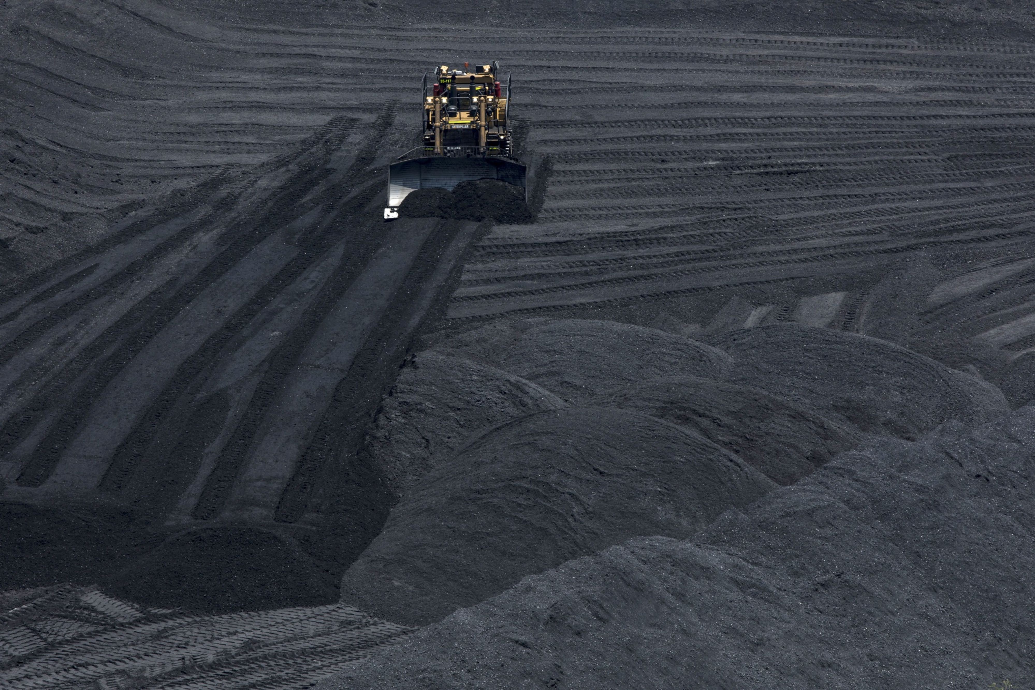 A bulldozer moves coal at a coal mine in Colombia .(Photographer: Nicolo Filippo Rosso/Bloomberg)