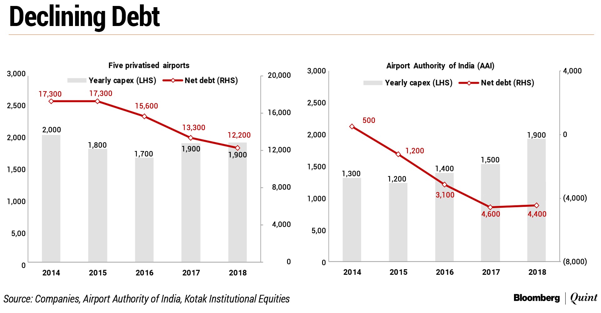 The net debt for the five privatised airports has reduced by Rs 5,000 crore between FY14 and FY18 despite an aggregate capex of Rs 9,500 crore in the period, it said. “AAI has actually benefited from the airport lease revenues from Mumbai and Delhi airports and has a net cash position since FY2015.”