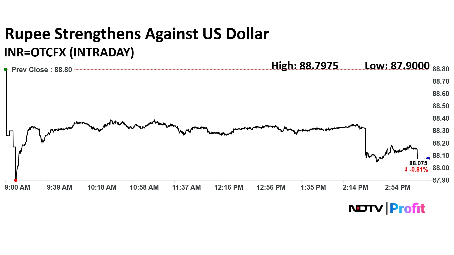 The Indian currency settled 73 paise stronger against US dollar at 88.07. It has emerged as the best performing Asian currency with 0.82% appreciation against the greenback. (Photo: Vijay Sartape/NDTV Profit)