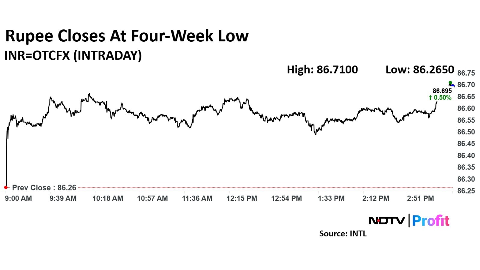 The rupee fell 45 paise to close at 86.70 against the US dollar, compared to 86.25 in the previous session. This marks the local currency's lowest closing level since March 17. Intraday, it dropped as much as 47 paise to 86.72 a dollar. Shortly after market open, it had slipped 41 paise to 86.66—its lowest level since March 19.