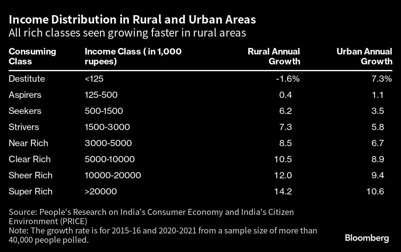 (Bloomberg) -- India will see a five-fold increase in its ‘super rich' families by the turn of the decade and a large chunk of the growth will come from rural areas — home to the nation's poorest, according to a study.