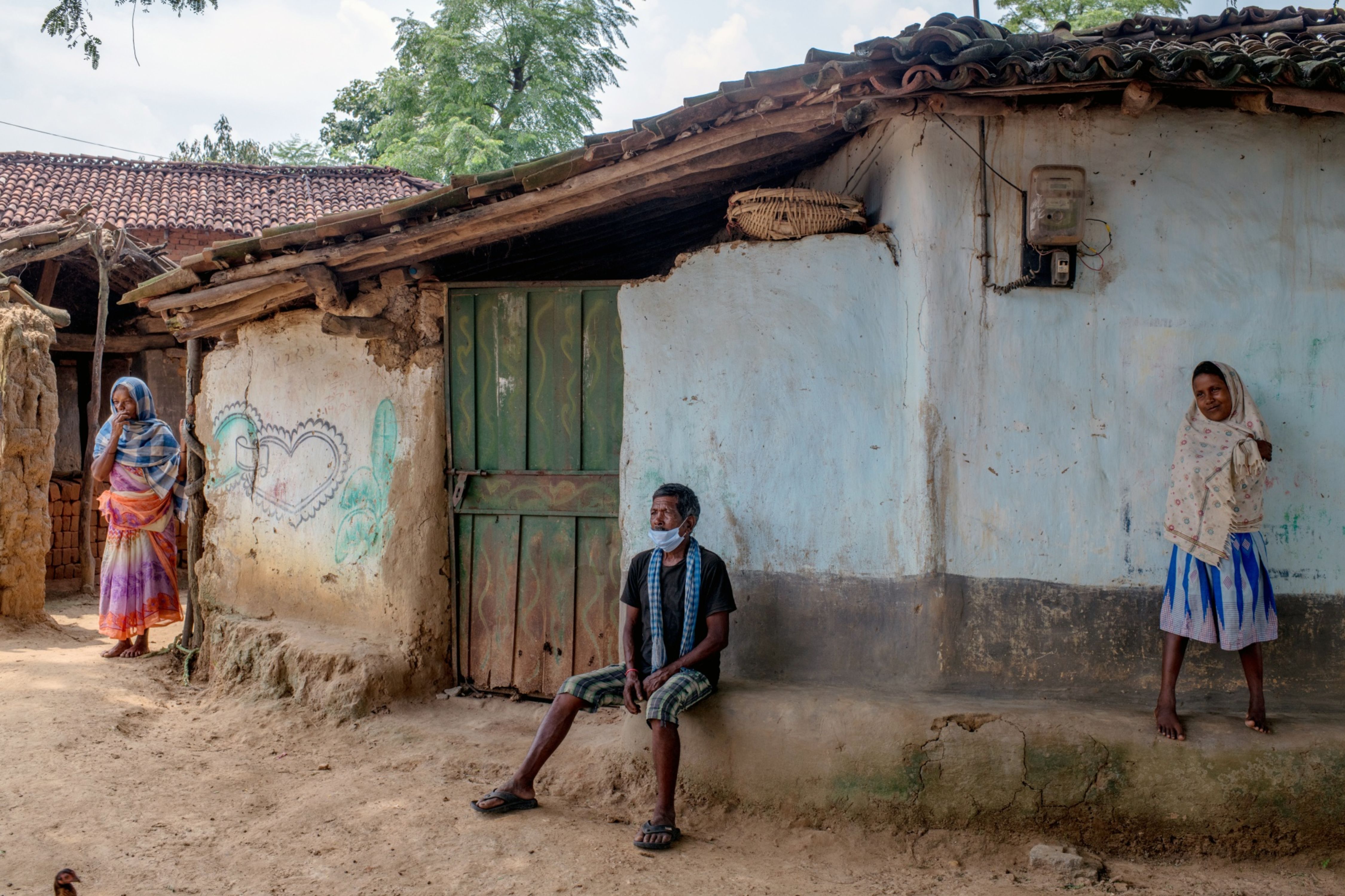 Villagers watch a passing rally for Covid-19 vaccination awareness, not pictured, in Bangaon Basti, Jharkhand, India, on Tuesday, Aug. 24, 2021. Photographer: Arko Datto/BloombergTopics