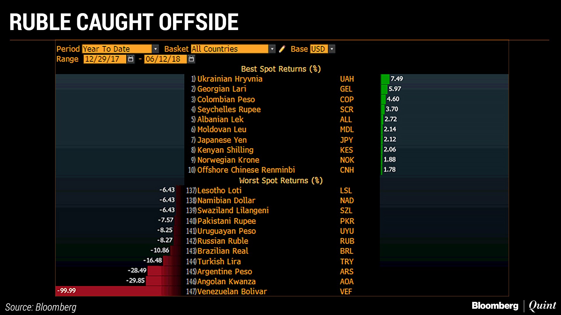 The Russian ruble has depreciated over 8 percent against the U.S. dollar so far this year, making it the sixth worst performer among the 147 currencies tracked by Bloomberg. The currency has weakened over 3 percent against the Indian rupee.