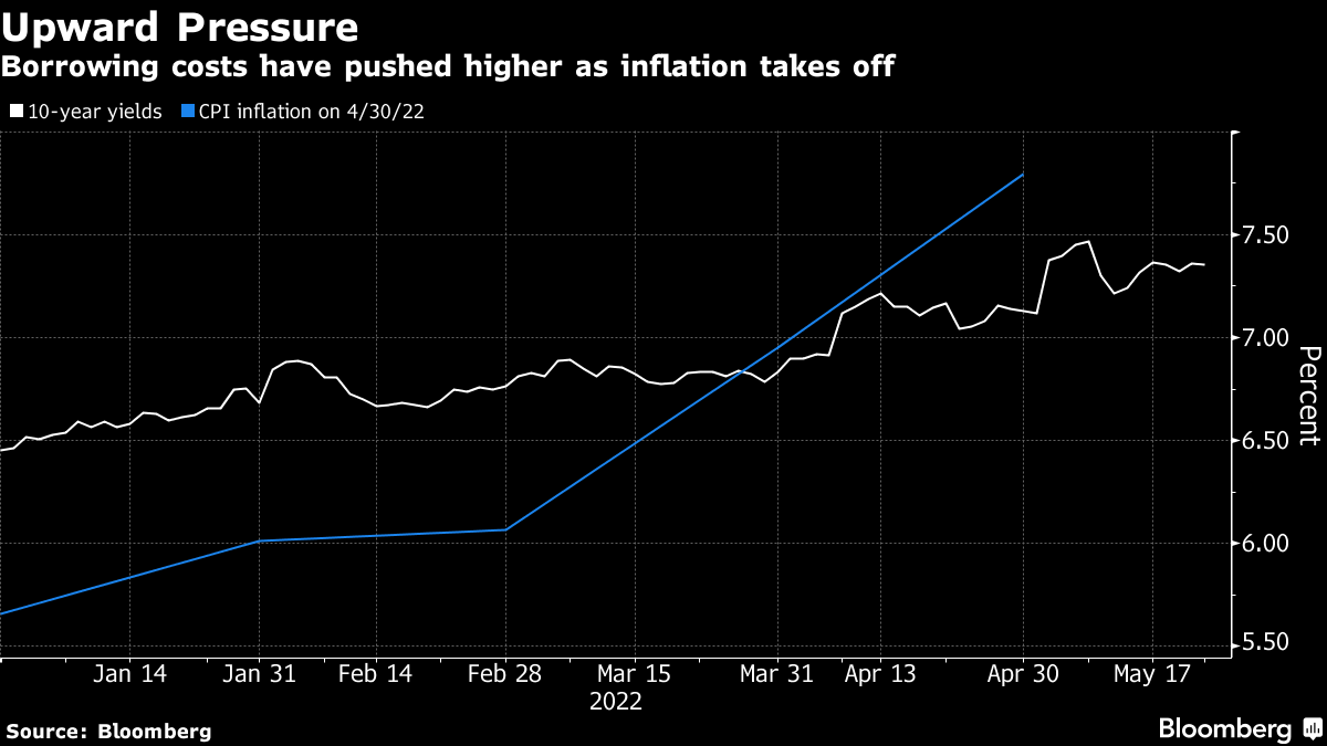 Expectations for higher rates are “a no brainer,” Das said in the interview Monday, adding that policy makers are aiming to remove a liquidity “overhang.” He also said that the RBI won't allow a “runaway” depreciation of the rupee.