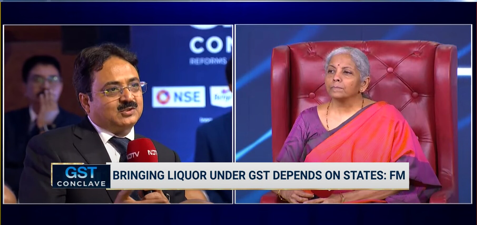 On the question of whether alcohol for human consumption and petroleum products will ever come under the Goods & Services Tax, Finance Minister Nirmala Sitharaman commented that it depends on the states.