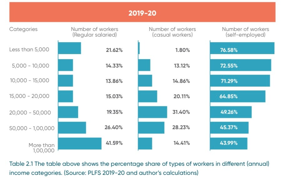 Nearly 15% of the entire workforce earns less than Rs 50,000 (less than Rs 5,000 a month), the report said.