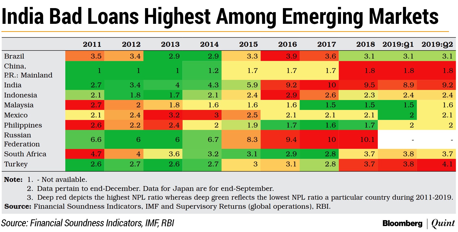 At 9.2 percent, the RBI said, India has the highest bad loan ratio among emerging markets, as on Sept. 30. The ratio stood at 8.9 percent as on March 31.
