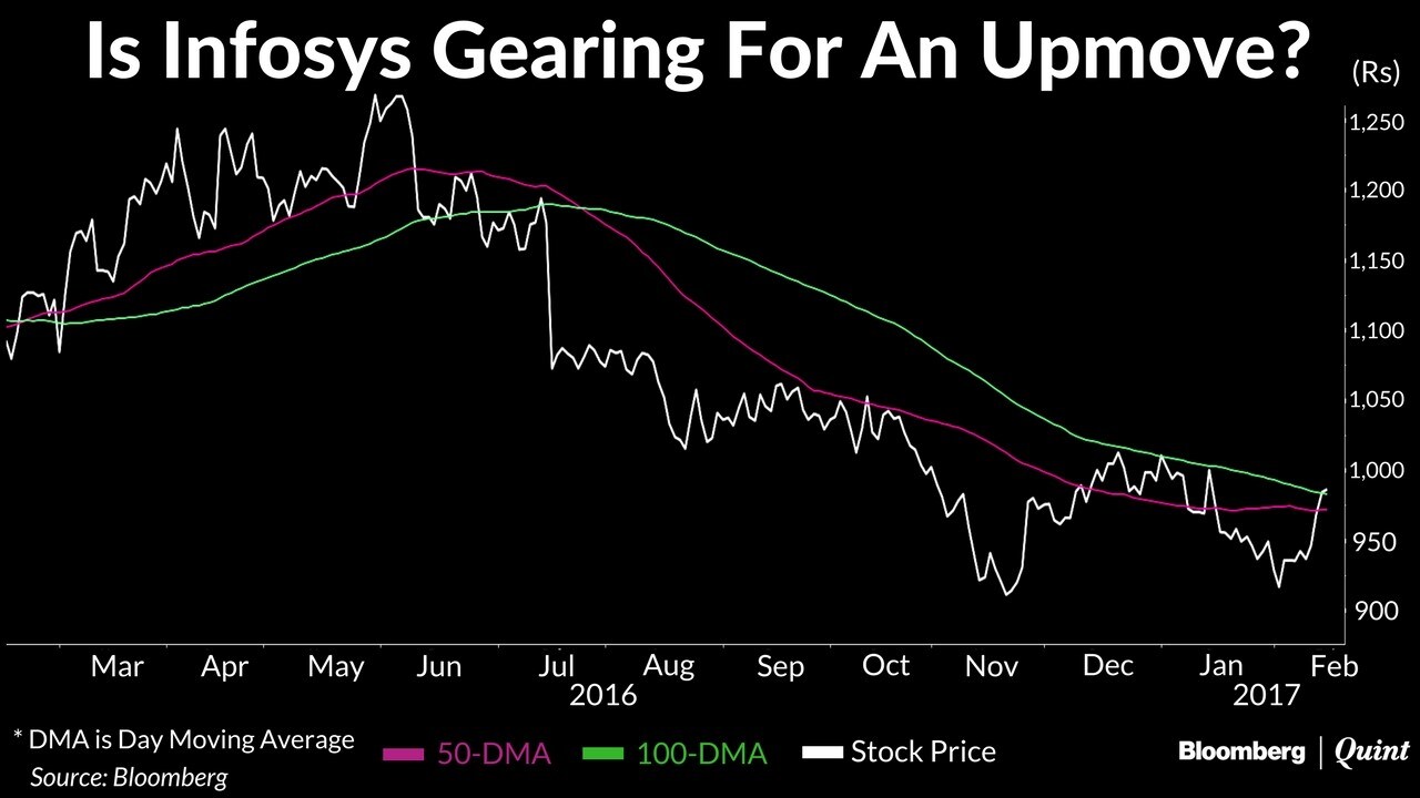 Infosys Ltd. has crossed its 50 and 100-day moving average after its founders and the present management struck a conciliatory note on Monday. In technical analysis this signals a potential rally.
