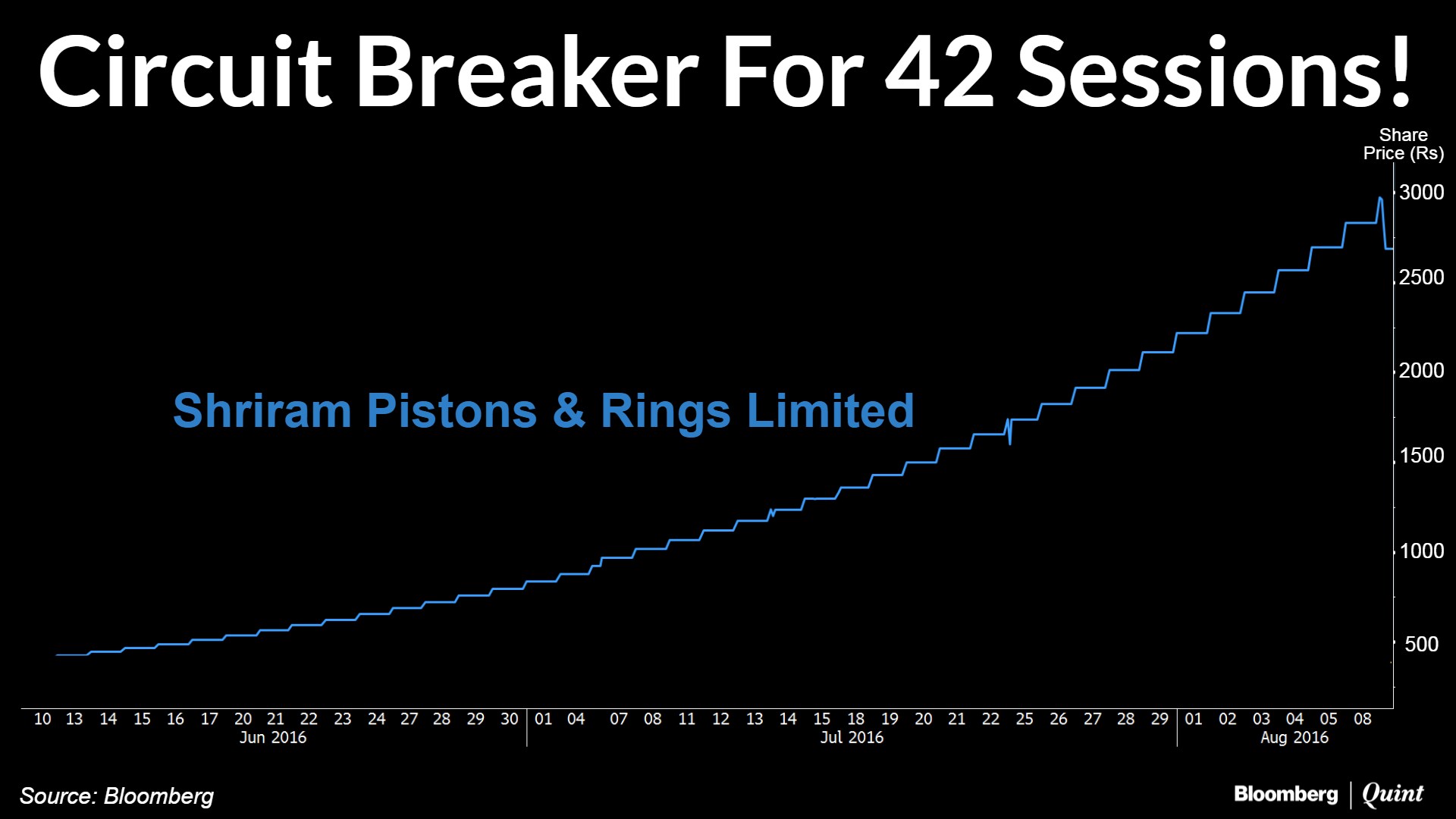 Of the total 42sessions, Shriram Pistons has hit upper circuit of 5 percent for 41straight sessions. Today is the first day in 42 trading sessions, that thestock corrected and hit the 5 percent lower circuit.