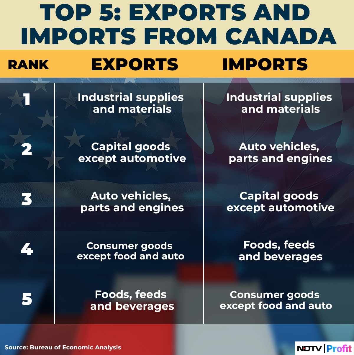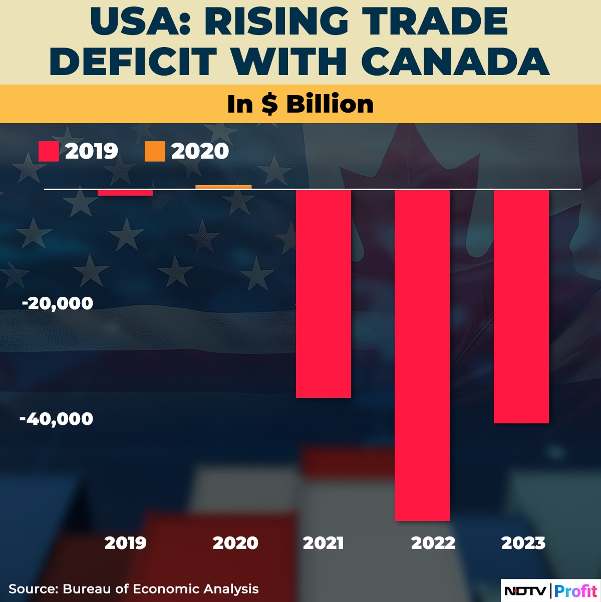 The deficit with Canada was about $40.6 billion in 2023. Exports to Canada accounted for 14.4% of total US exports, and imports from Canada accounted for 12.5% of total US imports.