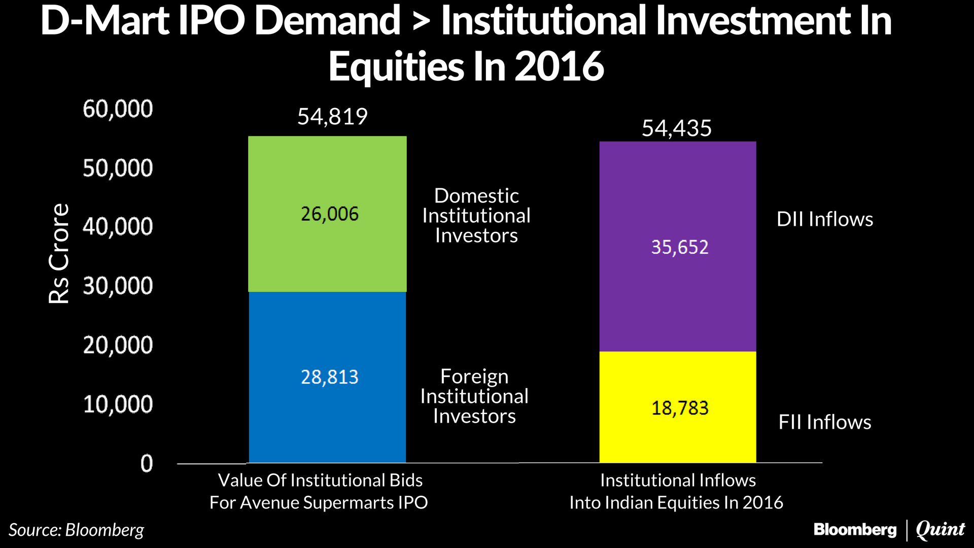 The total value of bids placed by institutions for shares in the initial public offer of D-Mart's parent exceeded their equity investments in all of 2016.