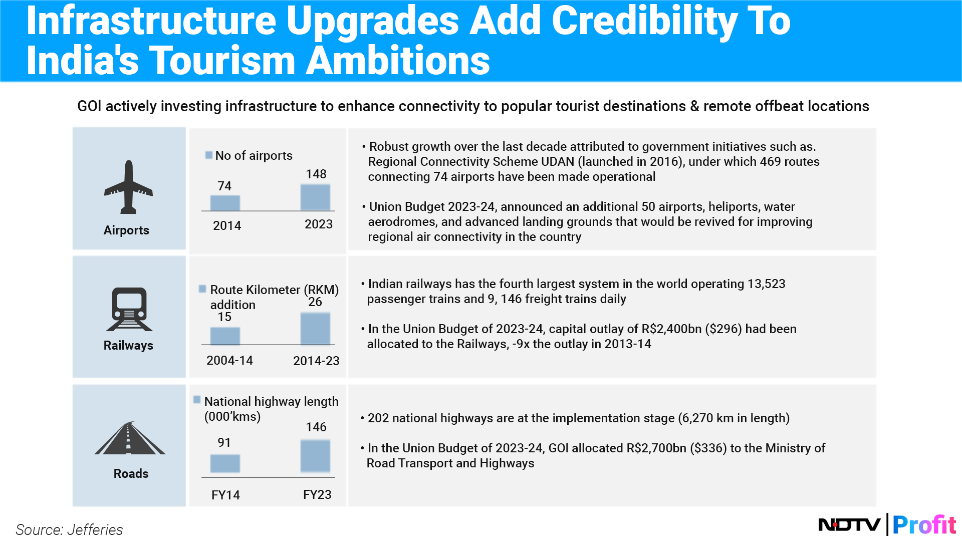 India is not short of religious tourism/vacation tourism or even medical tourism places but without infrastructure it is of no use. There is an added benefit of foreign exchange earnings, which is net negative for India till now.