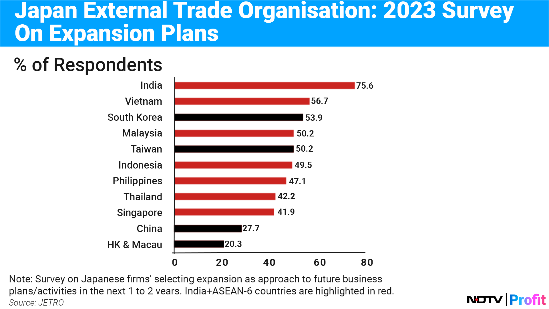 However, a very important vote of confidence for Indian manufacturing comes from probably the biggest investor in the world i.e., Japan, he said, referring to a survey on expansion plans by the Japan External Trade Organisation. 75.6% of the survey's respondents have shown interest in expanding to India over the next 1-2 years, it showed.