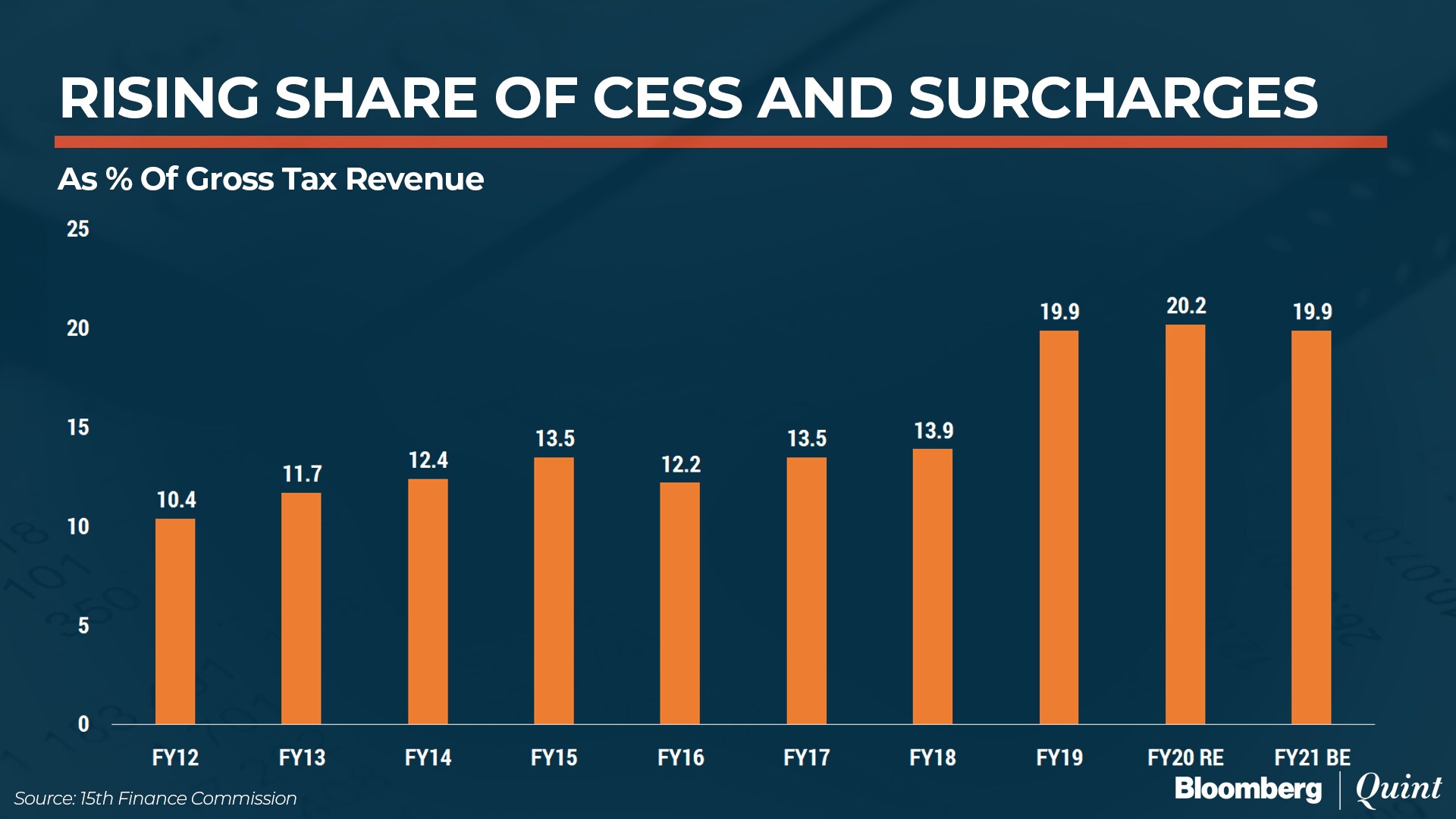But in that same period, rather than the central schemes reducing, they've in fact enhanced because of the nature of our politics. There is a political context in which you see a lot more centralisation. One of the ways in which the centre has found the fiscal space to do this is through the imposition of cesses and surcharges or rather the increase of cesses and surcharges. The 15th Finance Commission has in fact noted this fact that they have increased from 2011 onwards and are going to continue to increase.