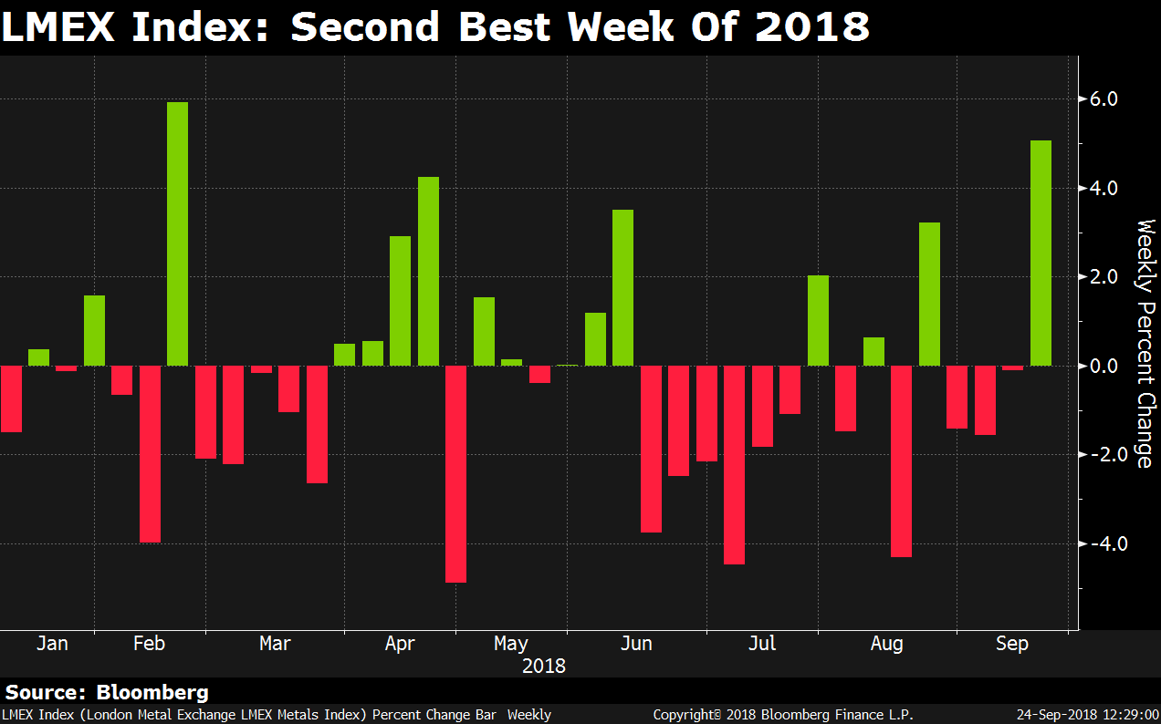 Metals may get more support after posting second-best weekly gains in the week ended Sept. 21. as the U.S. set tariffs against China at a lower rate than expected.