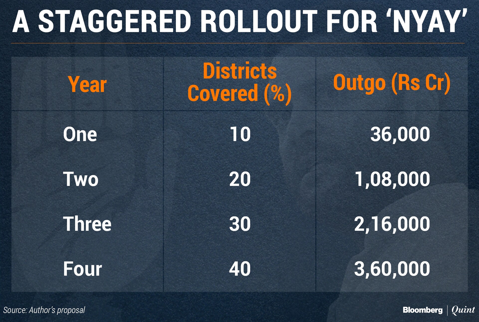 - So if we assume that the rollout will be across 10 percent, 20 percent, 30 percent and 40 percent of the districts over years one through four, the cash needed would be Rs 36,000 crore, Rs 1,08,000 crore, Rs 2,16,000 crore, and Rs 3,60,000 crore respectively.