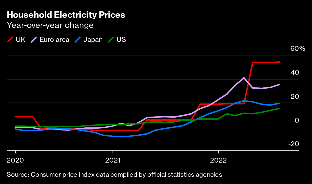 The U.S. is waking up to a problem that's plagued other parts of the world since last year. In Germany, the government slapped a levy of $296 on households to pay for natural gas as Russia squeezes energy flows to Europe after the invasion of Ukraine. In the U.K., government support for energy bills doubled, to $482 for every household starting in October, but prices are rising so fast that the support might not be enough. More than 100,000 people have signed a pledge from campaign group Don't Pay U.K. to cancel their direct-debit energy payments beginning in October.