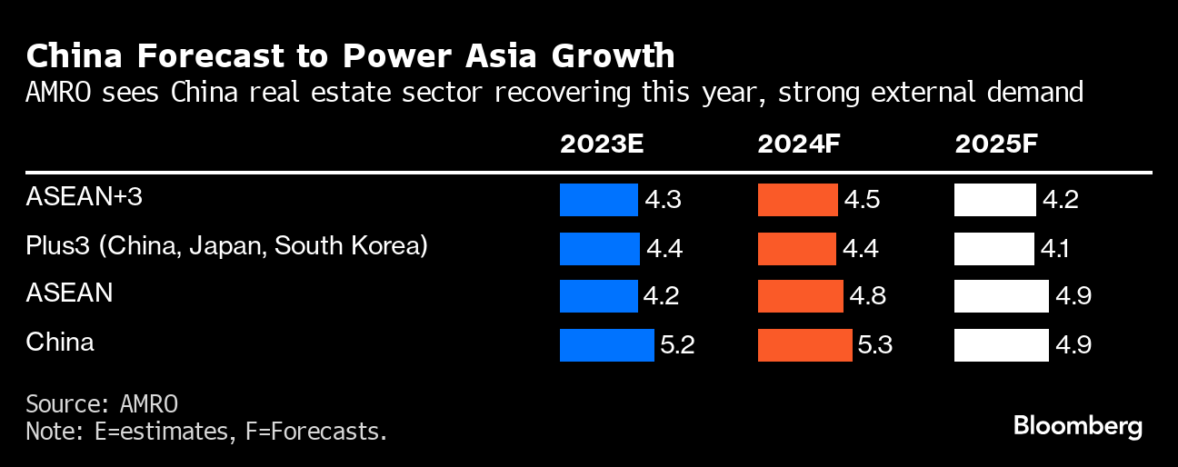 “China will continue to be a powerhouse in the region and the main driver of growth,” AMRO chief economist Hoe Ee Khor said by phone. The real estate sector weakness “will take a bit of time to overcome, but it will happen and we expect the drag on growth will bottom out maybe this year.”