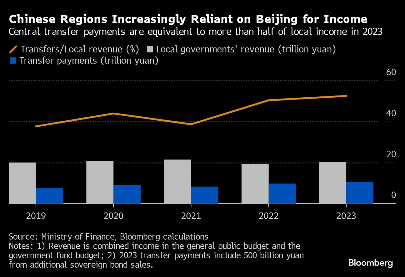 “The central government can use transfer payments to address uneven developments and fiscal power among regions,” said Ding Shuang, chief economist for Greater China and North Asia at Standard Chartered Plc.
