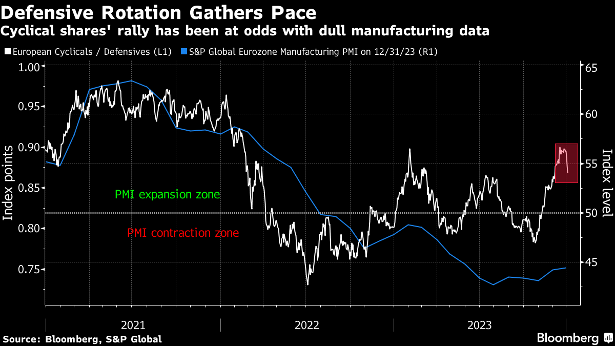 European stocks had a rocky start at the beginning of this year as traders pared back rate cut expectations and awaited more definitive signals from central banks they are ready to pivot to easier policy. The focus will be on the US jobs report due tomorrow for clues about Fed policy. Meanwhile, investors will monitor the euro-zone inflation report also due on Friday which is expected to show a bump.
