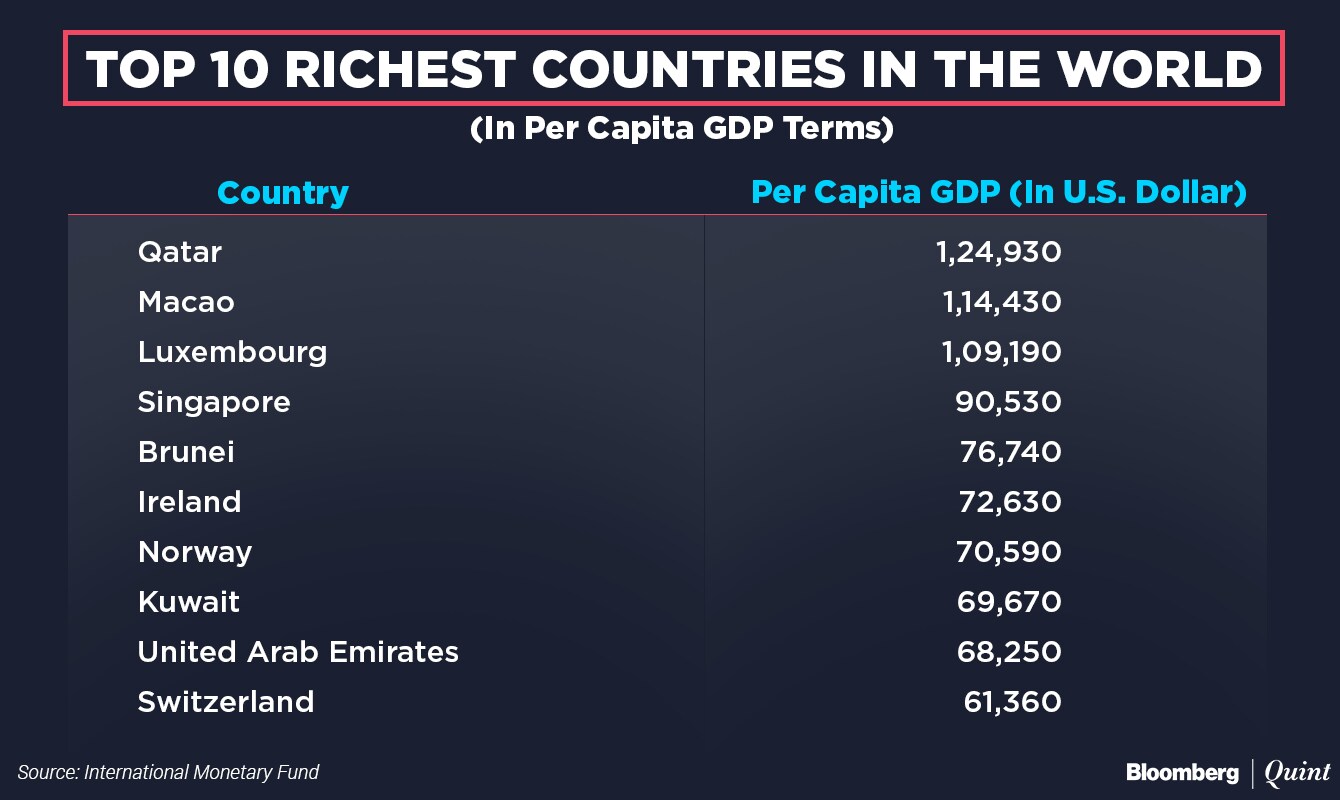 The data, which forms part of the latest World Economic Outlook report of the IMF, ranks over 200 countries in terms of per capita GDP based on purchasing power parity.