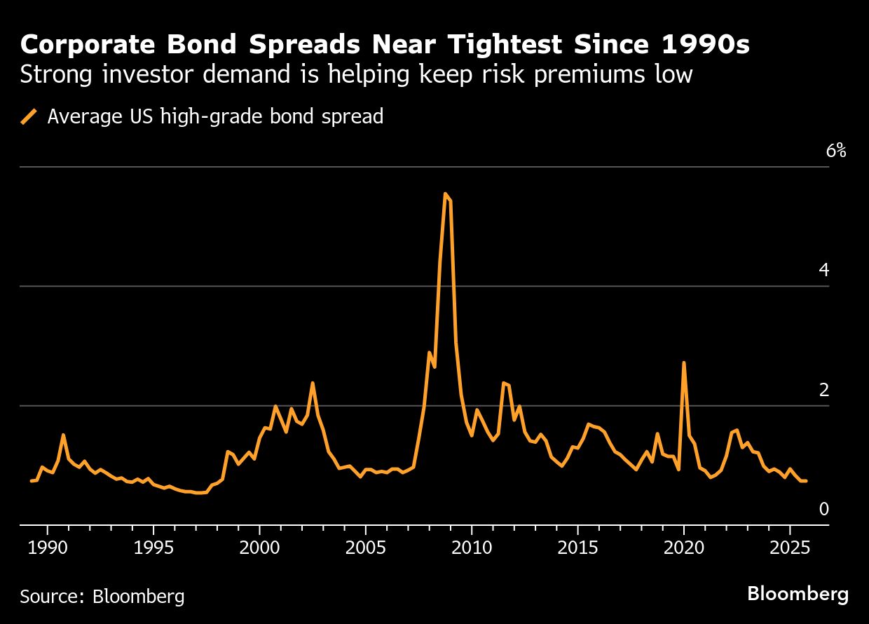 Oracle Corp. sold $18 billion of investment-grade bonds last month, and banks this week kicked off a $38 billion debt offering that will help fund data centers tied to the company. The company saw its cash flow flip negative this year for the first time since 1992 and analysts anticipate the metric will be in free fall over the coming years before returning to positive in 2029. Debt investors have been buying protection against the company defaulting on its debt, a trend that Morgan Stanley sees continuing in the near term.