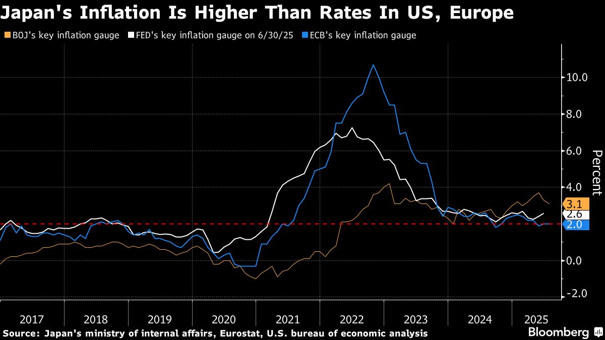 Data Friday showed that consumer prices excluding fresh food rose 3.1% from a year earlier in July, topping economists' forecasts and staying well above the BOJ's 2% target even as price growth moderated.
