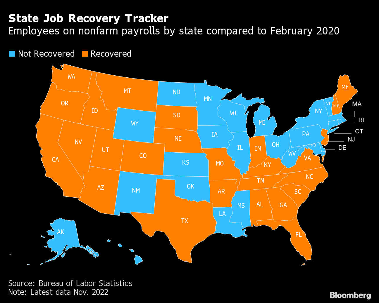 Here's a look at where jobs came roaring back in 2022, and where they failed to, and what that means for the year ahead.