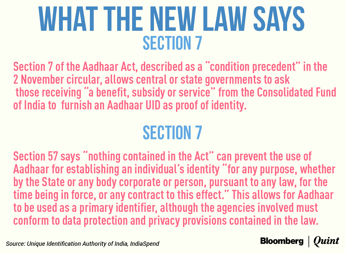 It offered detailed instructions on how to ensure these moves would stick: “In order to do so legally, the ministry/department or other agencies in their jurisdiction should amend their own rules, issue circulars, orders or guidelines under their laws thereby prescribing use of Aadhaar under Section 7 or 57 of the Aadhaar Act, as the case may be.”
