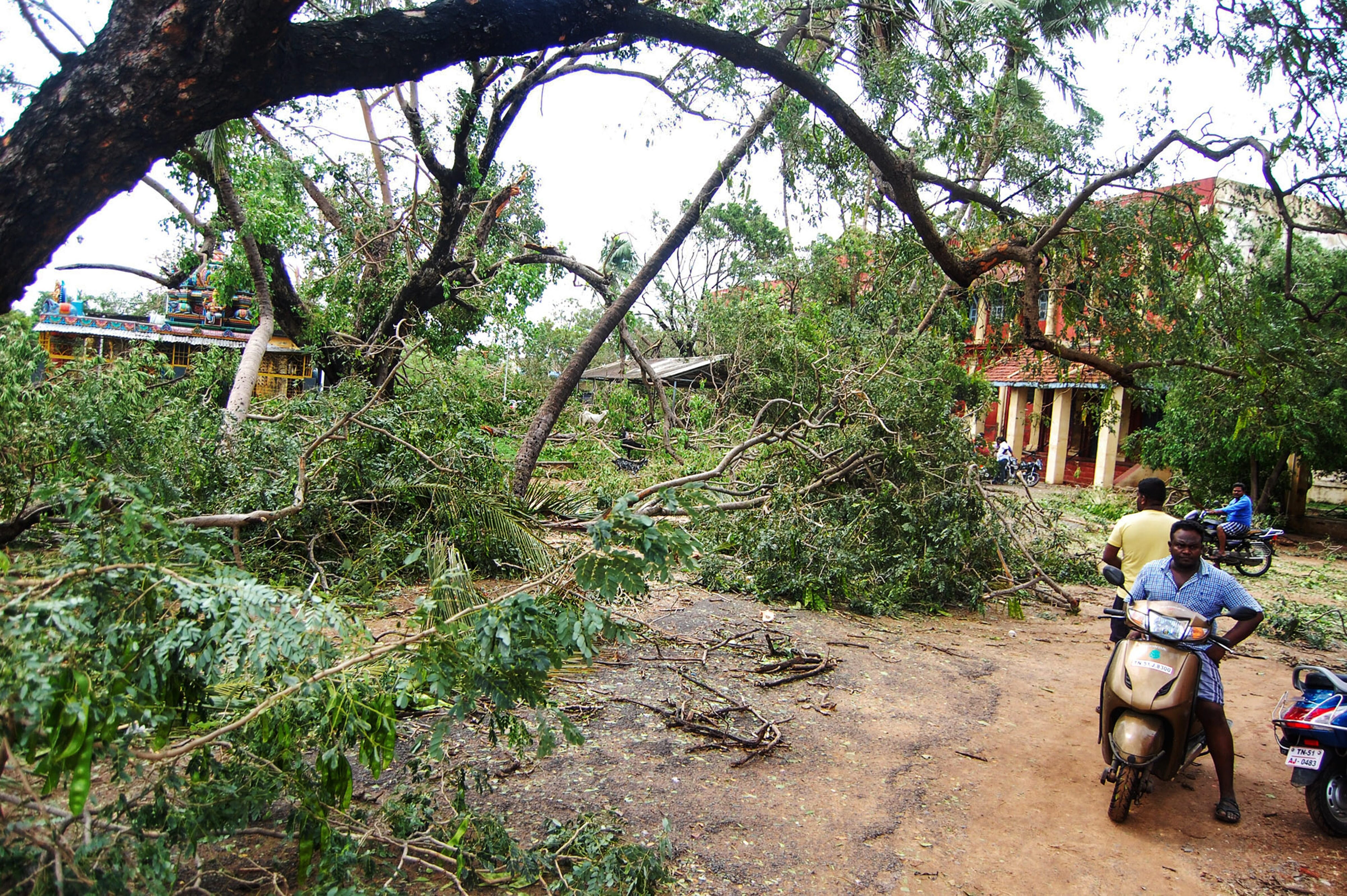 Gusty winds due to the cyclonic storm resulted in hundreds of trees and electricity poles being uprooted in Nagapattinam and Karaikal districts.