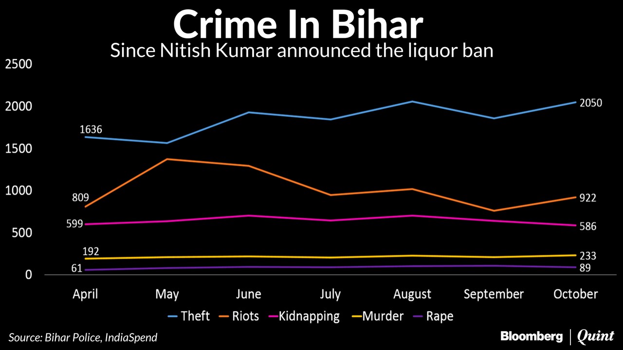 In other words, the liquor ban does not correlate with a drop in crime, a primary reason for the new law, which came into being despite the Patna High Court holding it violative of the Constitution because it denied citizens their right to privacy under Article 21.
