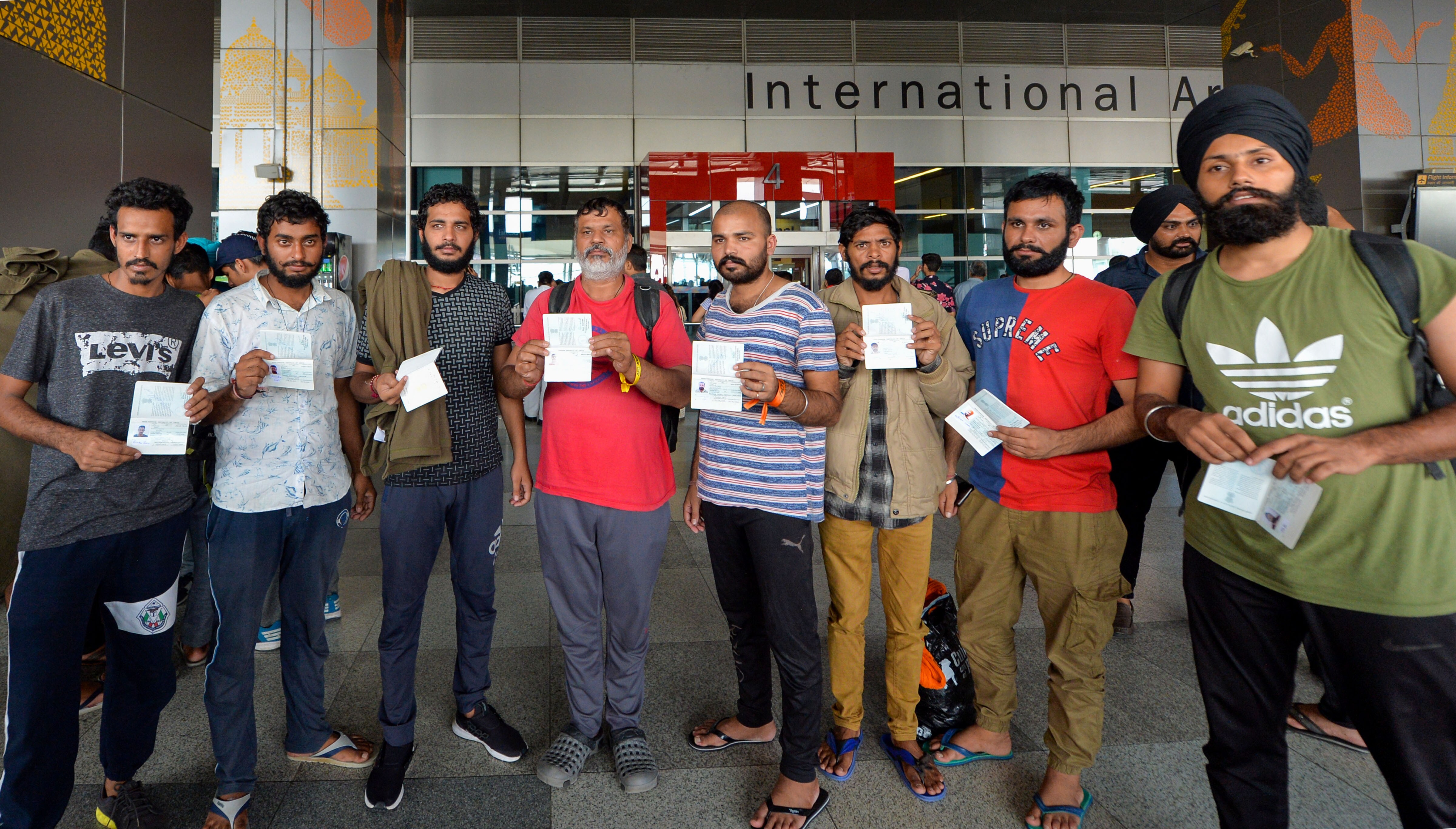 Indian nationals who did not have a condition of regular stay in Mexico show their passports at Indira Gandhi International Airport after being deported, in New Delhi. (Source: PTI)