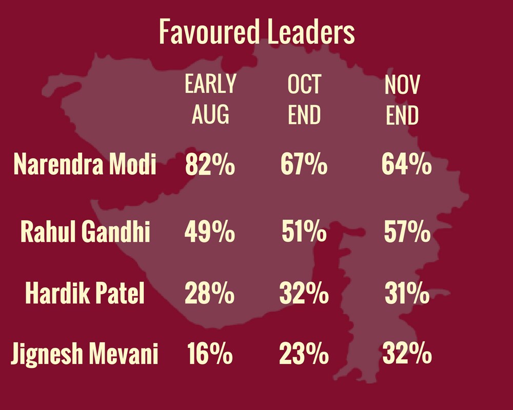 As far as local youth leaders Hardik Patel and Jignesh Mevani are concerned, both have sustained the popularity they gained since October-end. This comes in the backdrop of Patel's allegedly ‘scandalous CD' and Mevani's announcement to contest the elections as an Independent.