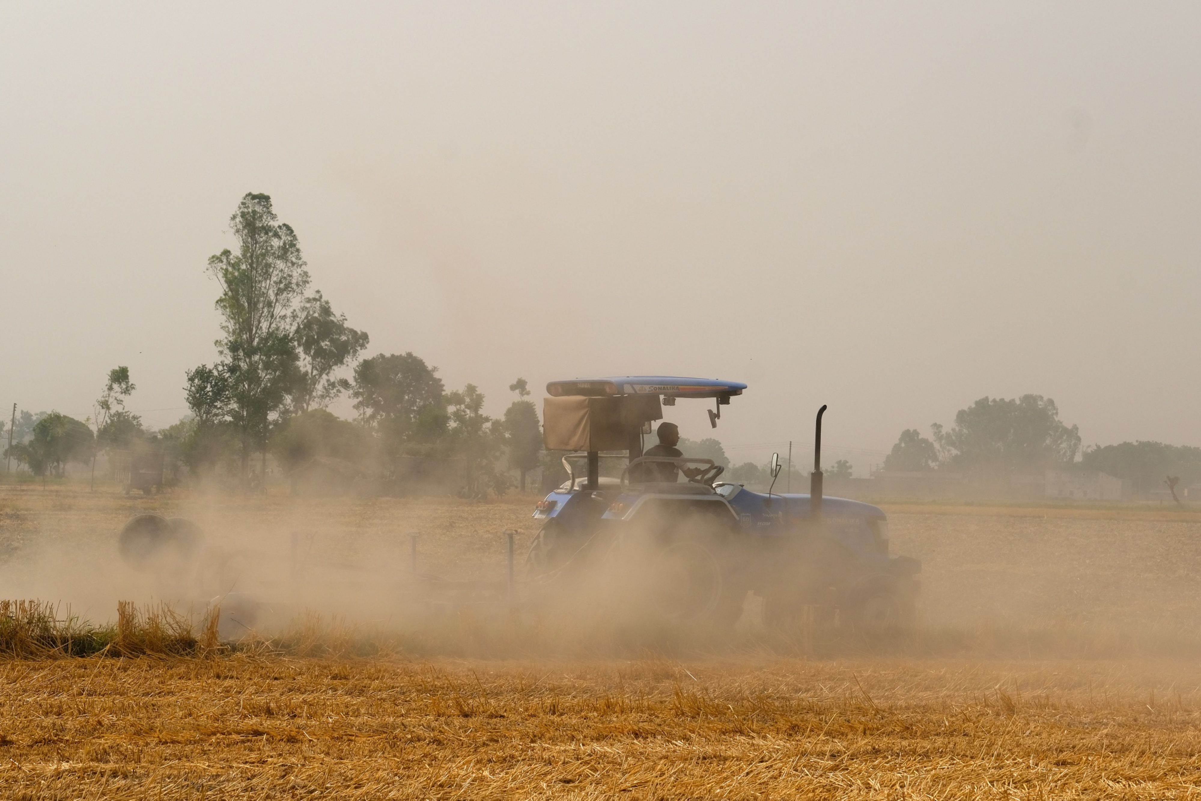 A farmer on tractor prepares his wheat fields for the next crop in Punjab. (Photographer: T. Narayan/Bloomberg)